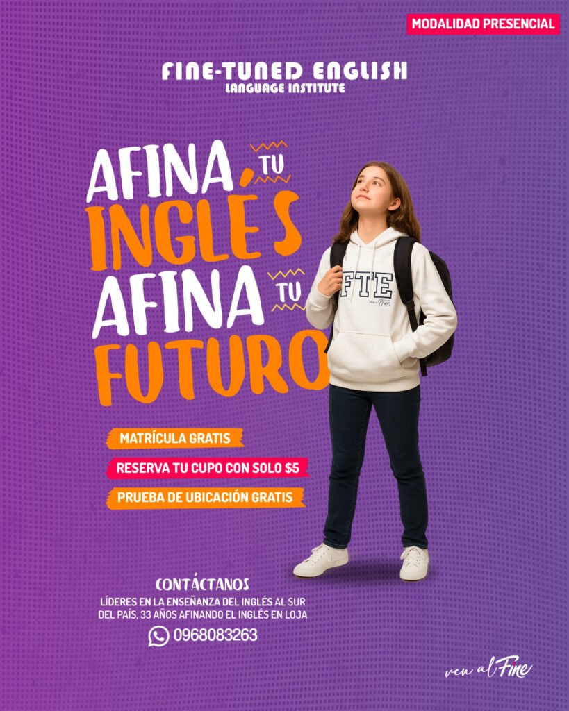 Con más de 32 años de trayectoria , Fine-Tuned English es la institución líder y de mayor confianza en la enseñanza del inglés en Loja. Desde nuestra fundación en 1992 , nuestra misión ha sido ofrecer una educación innovadora y de alta calidad que abre un mundo de oportunidades para niños, jóvenes y adultos. Te invitamos a explorar por qué miles de estudiantes nos han elegido para transformar su futuro.